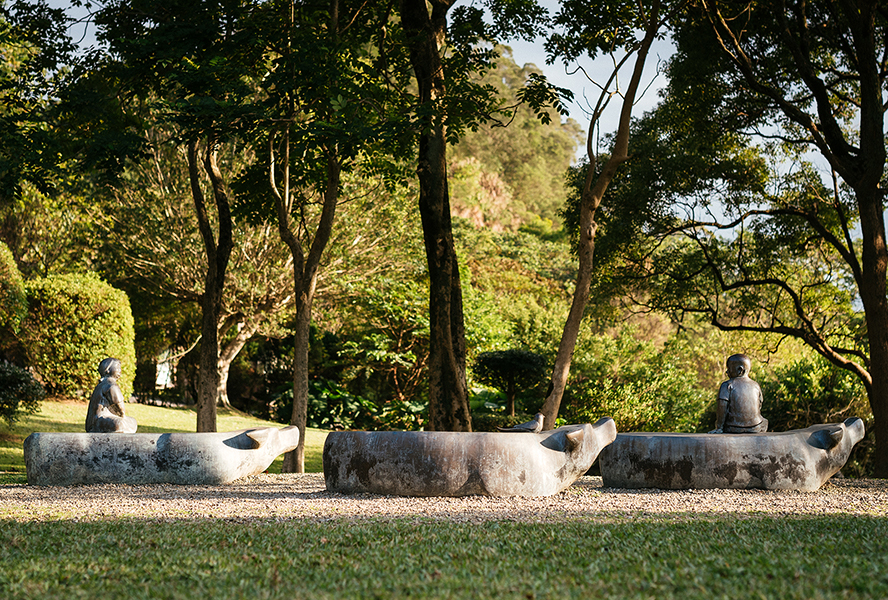 從大處的樓宇、門洞直至小處的樑柱、窗櫺,透過人文管家的詳述,建築師與工匠齊心協力創作的畫面好似躍然眼前,經由管家導覽,分享南園之間的對話,如隈研吾與漢寶德的建築對話,國寶雕刻家王秀杞的水牛望月石像作品等,予以遊人最豐沛而深刻的美感體驗。